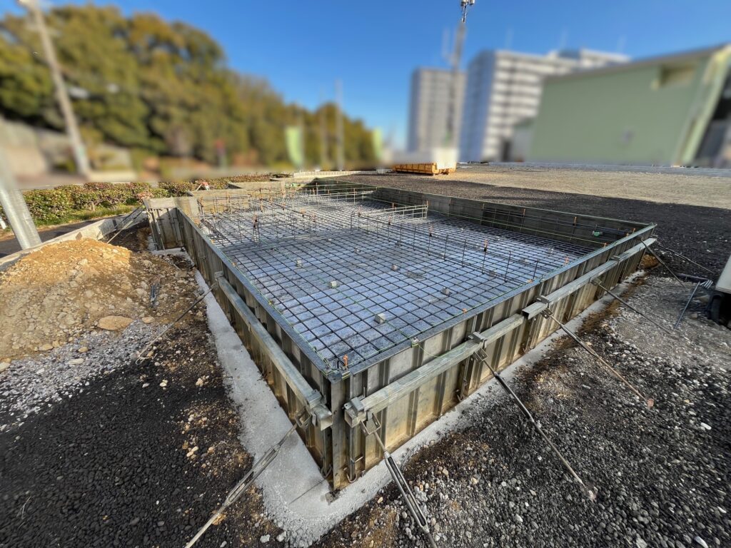 2026-02-06 【建築中 V号地 進捗】 土台部分の上に配筋工事が行われていました! 配筋工事とは、基礎図面の通りに鉄筋を組んでいくお住まいの骨組みづくりです。 耐久性の良し悪しが左右される大切な部分なので、本数や位置・高さ・間隔などの基準があります。 そしてそれがしっかり守られているか、この後第三者機関による配筋検査が行われます。 丈夫なお住まいが出来上がるには、丈夫な基礎が不可欠です!
