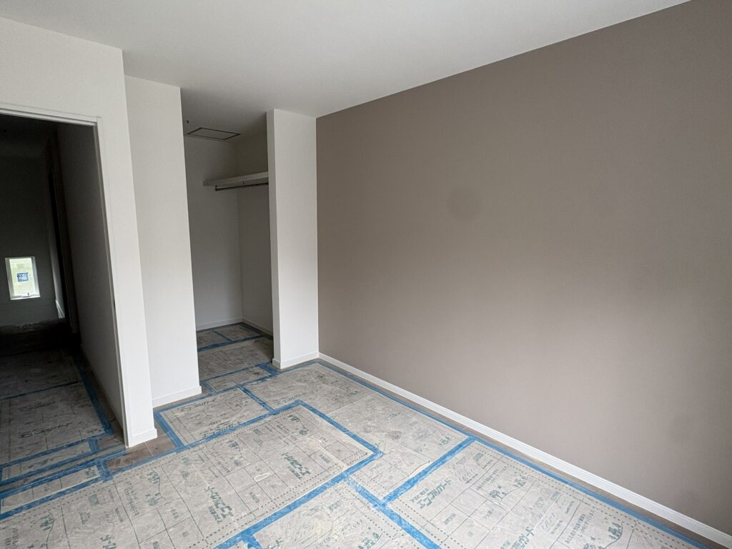 寝室には落ち着いたグレーのクロス、お子様室には緑と青のくすみカラーのクロス