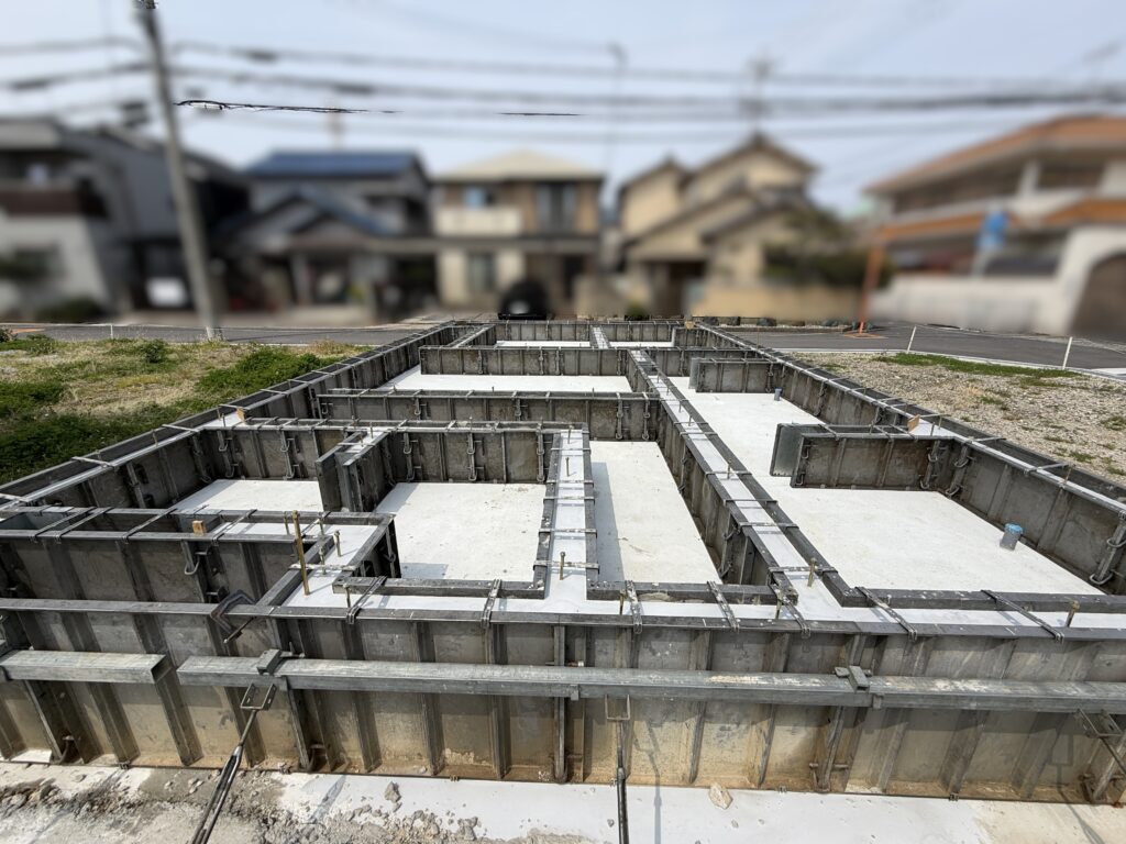 型枠を外し、あとは玄関部分にもコンクリートを入れ固めれば基礎の完成です!