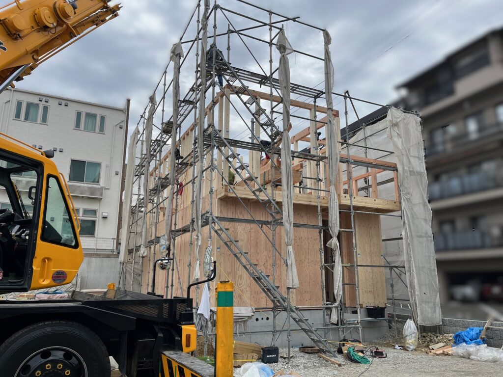 『建築中 W号地 上棟』