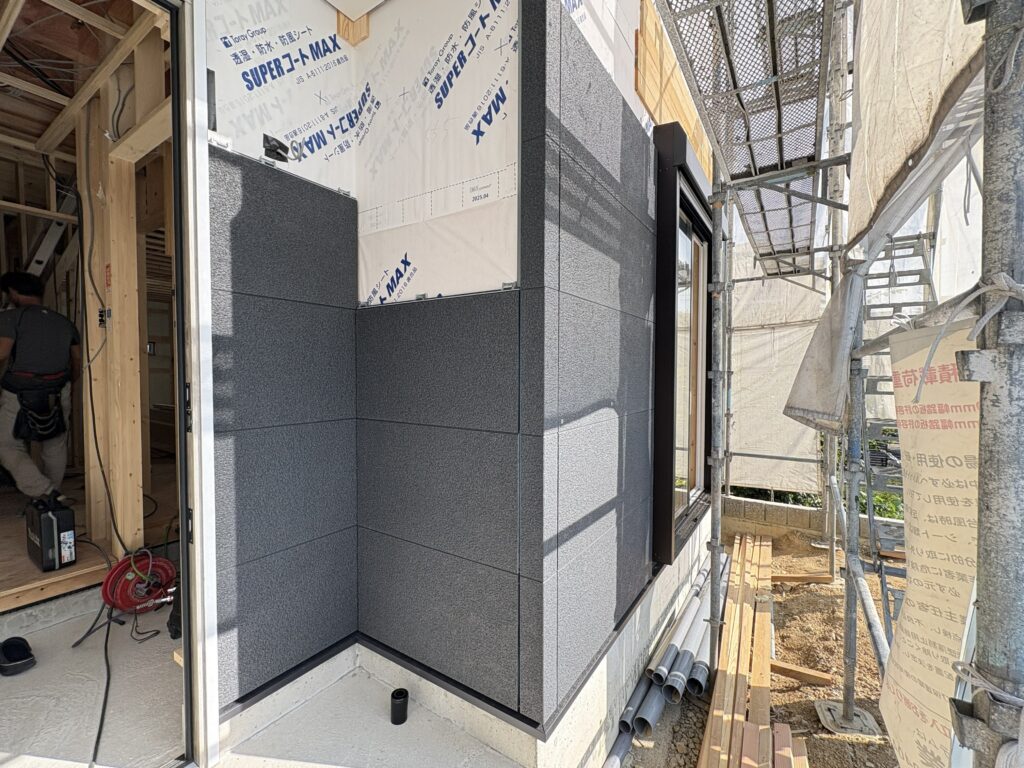 そしてこの上からお施主様が決められた外壁材が少しだけ貼られてきていました!