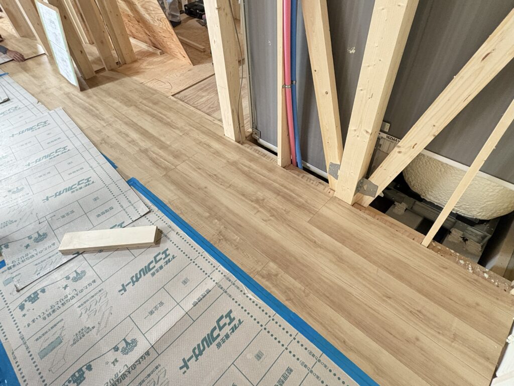 給排水管の大部分は、床下を通して配管するため、床がふさがれる前に工事を行います。